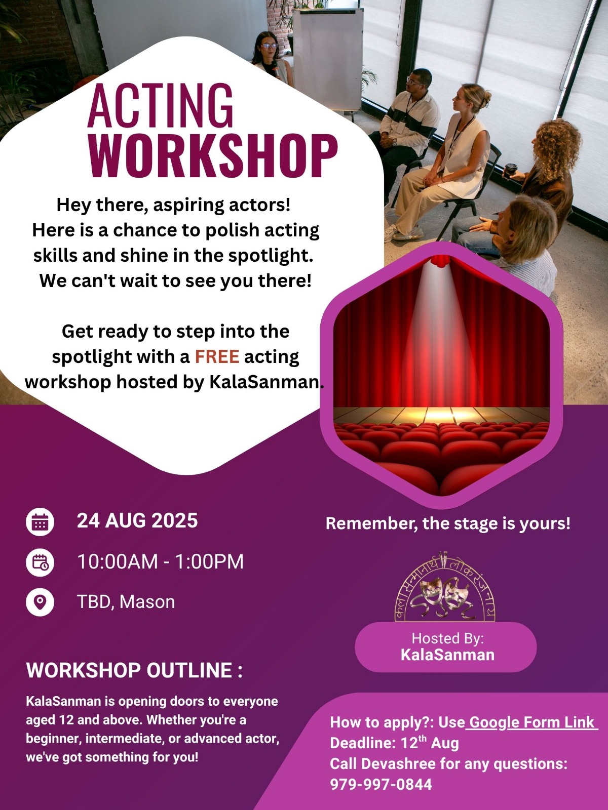 Get ready to step into the spotlight with a FREE acting workshop hosted by KalaSanman.